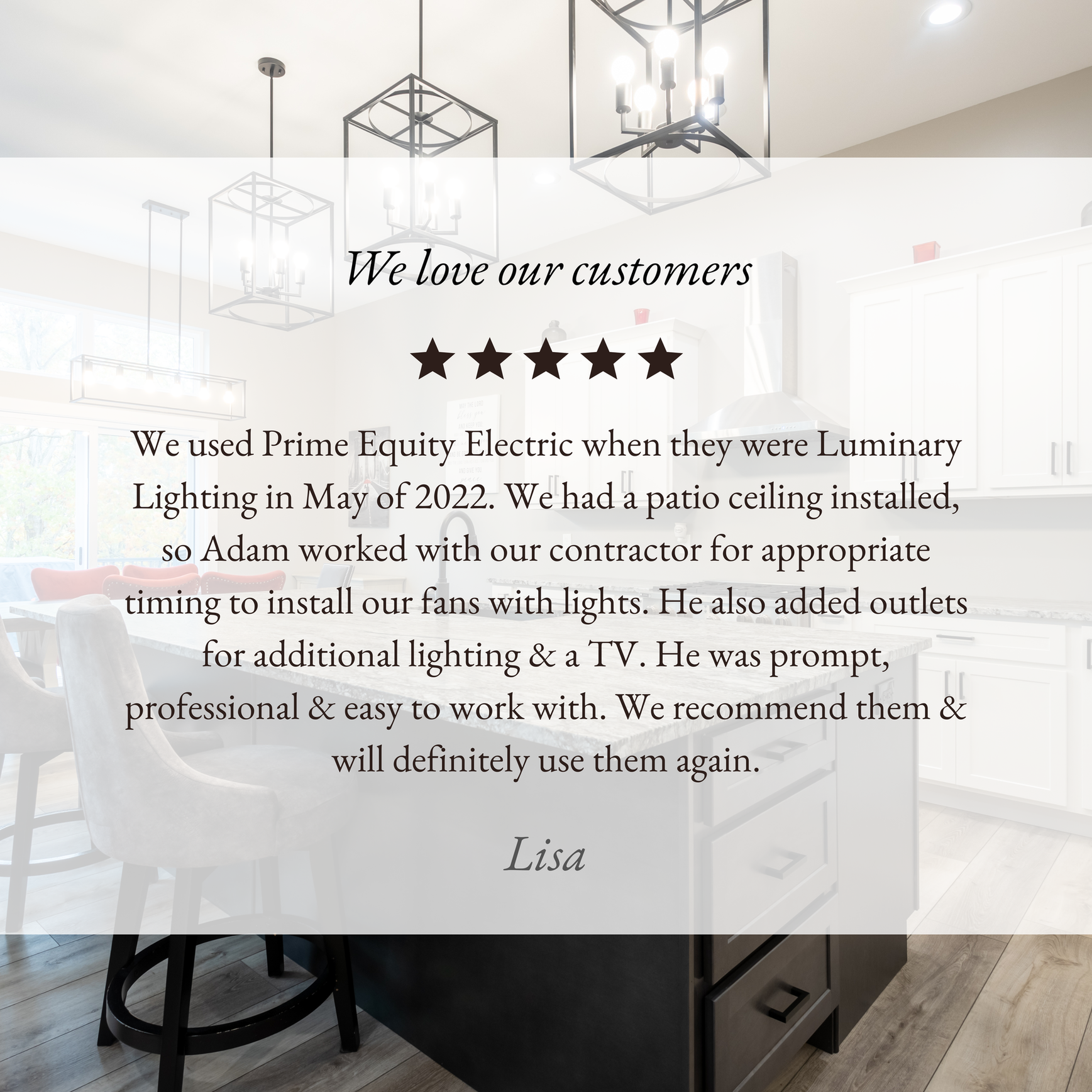 At Prime Equity Electric, your satisfaction comes first, every job is backed by our 100% satisfaction guarantee. As a locally owned and operated St. Louis company, we take pride in building long-term relationships through honest work, reliable service, and lasting results.